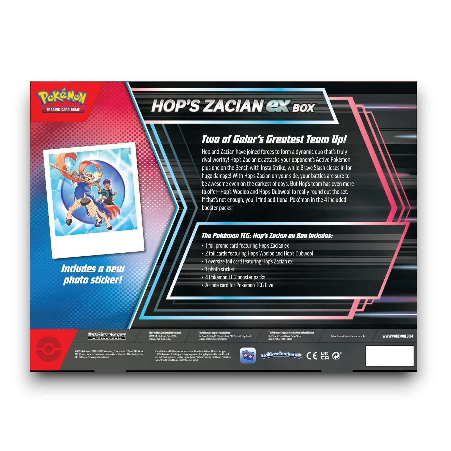 Two of Galar’s Greatest Team Up! Hop and Zacian have joined forces to form a dynamic duo that’s truly rival worthy! Hop’s Zacian ex attacks your opponent’s Active Pokémon plus one on the Bench with Insta-Strike, while Brave Slash closes in for huge damage! With Hop’s Zacian on your side, your battles are sure to be awesome even on the darkest of days. But Hop’s team has even more to offer—Hop’s Wooloo and Hop’s Dubwool to really round out the set. If that’s not enough, you’ll find additional Pokémon in the 4 included booster packs!